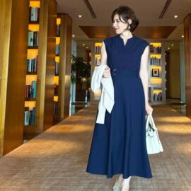 お店がボリュームのある懐石コースが人気の高級和食だと、ジャストサイズの服では苦しくなってしまいそう。そこでおすすめなのが胸下をゆったりフレアに切り替えたブラックキャミワンピース。これなら食べ過ぎても安心です。