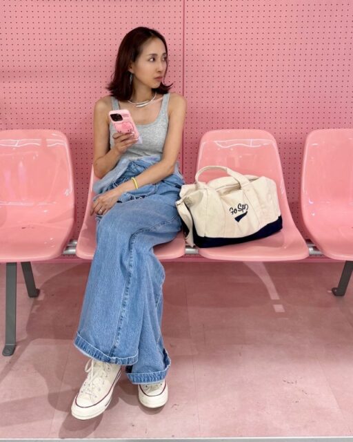 5|流行りの着こなしに「キャミワンピースとデニムパンツの重ね着×スニーカー」