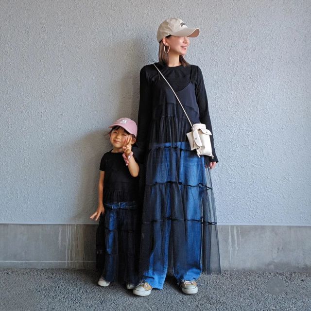 デニムパンツ×スニーカーコーデでぜひやってみてほしいのが「チュール素材のキャミワンピース」との重ね着。透け感あるワンピースはハードルが高く感じますが、デニムとスニーカーを合わせれば即カジュアルダウンされます。これなら流行りのレイヤードファッションを気軽に楽しめすよ。