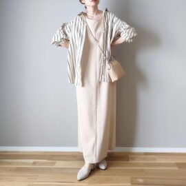 爽やかな「シャツワンピースとボトムのレイヤード」