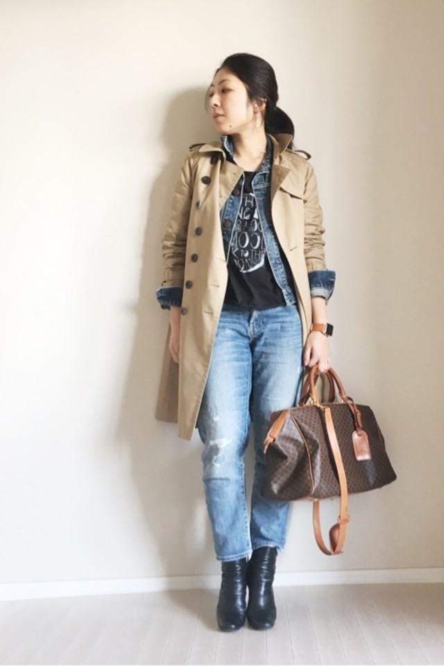 デニムジャケット×トレンチコート