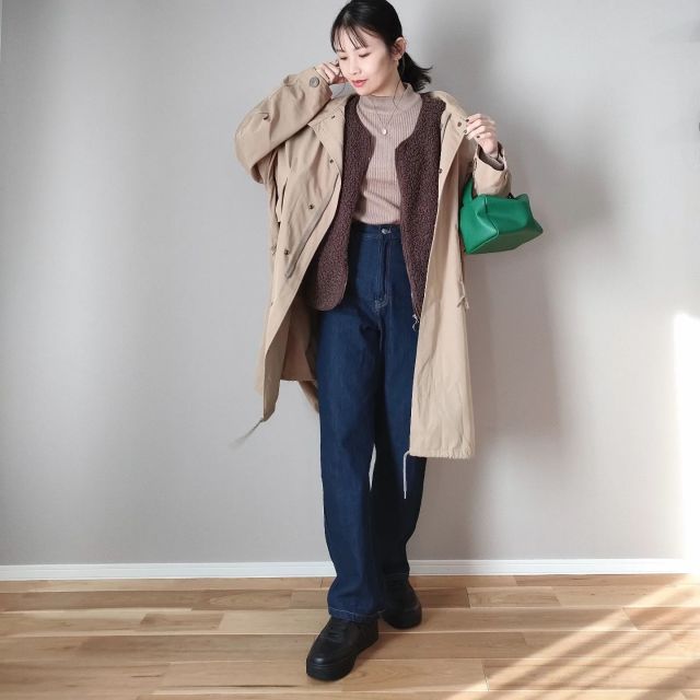 カジュアル派さんに人気の「モッズコート」もトレンドに左右されない一枚。ゆったりとしたシルエットに加え、裾にドローコードが施されたフィッシュテールデザインはメンズライクな雰囲気が魅力。ミリタリー感があり、羽織るだけで辛口なコーデに決まります。