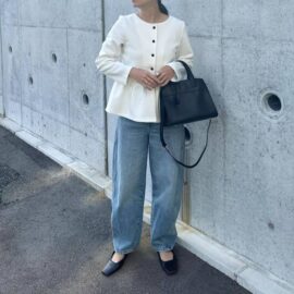 こちらの2スタイリングは、どちらもUNIQLO(ユニクロ)の羽織りを使ったコーデ。ジャケットやきれいめノーカラーアウター、ツイード見えするカーディガンなど、ユニクロはシーズンに合わせたきれいめ羽織りの宝庫なんです。いつもの服装にサッとプラスするだけで、参観日に合うきれいめ上品スタイルが作れますよ。