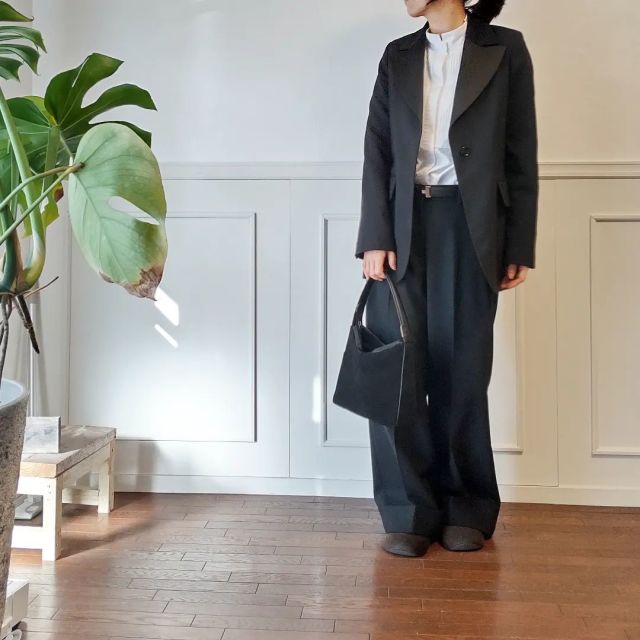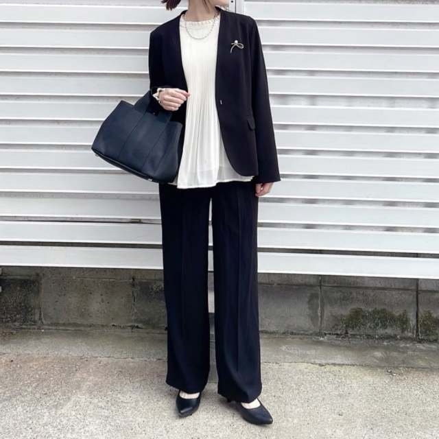 40代50代ママの高校卒業式コーデにぴったりなのが「ダークカラーのパンツスーツ」。黒・ネイビー・チャコールグレーなど落ち着いた色を選んでくださいね。