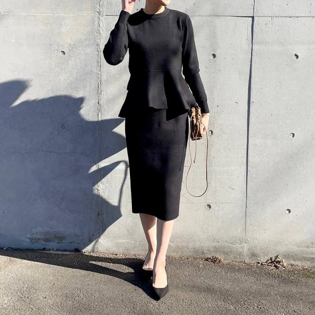 無難にまとめたい場合は「トップスとタイトスカートのセットアップ」が安心です。パンツよりセレモニー感があり、上品な着こなしに。ひざ下~ふくらはぎ丈のタイトスカートを選ぶと、大人っぽくてエレガントな雰囲気に決まりますよ。