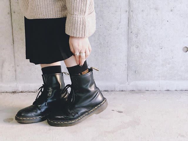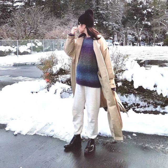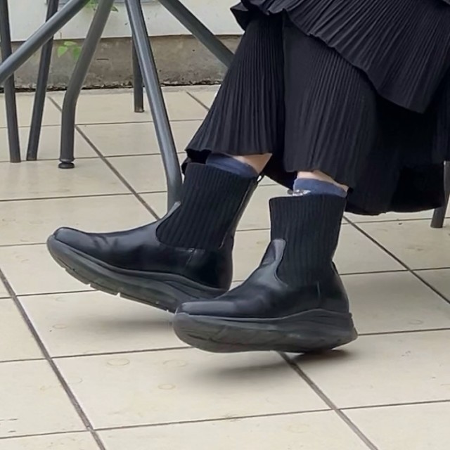 着こなし方が難しそうな組み合わせですが、靴を選べば意外と簡単。難易度が低めなのは、ゴツめのレースアップブーツやモコモコのムートンブーツとの合わせです。ボリュームがあるため重ね履きコーデのバランスが整います。