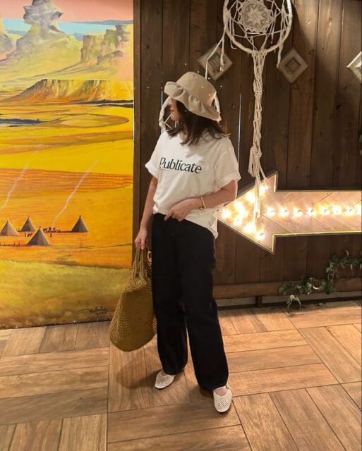 ブラックのデニムパンツは、デニムで定番のインディゴよりきれいめに着こなせる一枚。だからこそ部屋着っぽくなりがちな「半袖Tシャツ」にはうってつけです。ブラックのデニムパンツが大人っぽさを加え、Tシャツが50代の装いにしっくりマッチ。カジュアルでサマになる着こなしです。