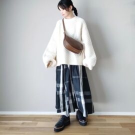 パンツスタイルはもちろん、スカートのカジュアルコーデに合わせるとリュックが少し大人っぽく持てますよ。スタイリングの立体感がアップするのもリュックの魅力です。