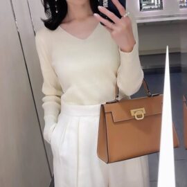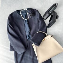 バイキング形式のレストランにぴったりなのが「Vネックのジャンパースカート」。ラクなのにクリーンな雰囲気を備えているのでホテルのランチビュッフェにも◎。貴重品を携帯できるコンパクトなショルダーバッグを持参すると、お料理を取りに行くときに便利ですよ。
