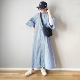 こちらは白サロペットにデニムシャツを合わせた春らしいコーデ。明るい配色コーデにオールブラックのスニーカーを取り入れるなら、キャップや時計など小物も黒で統一するとよりスッキリ見せられます。