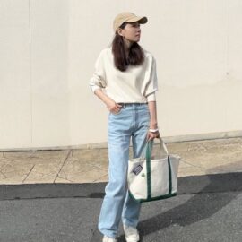 このときトップスはスカートにウエストインするのが正解。上半身がコンパクトにまとまり全身のバランスが整いますよ。