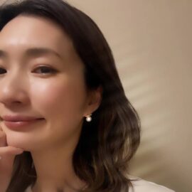 ブローチと同じ地金のピアスを添えるのもおすすめ。さりげなくカラーリンクすることで統一感が図れます。