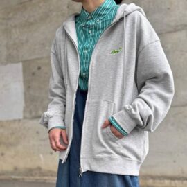 カーディガン同様に使えるのが「フード付きのジップパーカー」。生地が柔らかく気軽に羽織れるので、夜行バスのコーデにぴったりです。フードを深くかぶってしまえばアイマスク代わりにも使えます。