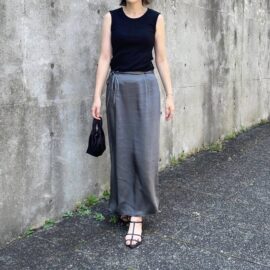 ぴったりシルエット&肩出しするタンクトップにボリューミーなキャミソールが映え、おしゃれなレイヤードスタイルを演出。ボトムはIラインのスカートやパンツを選ぶとコーデバランスが整います。