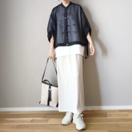 長袖だって着やすいシアーシャツのレイヤードコーデ