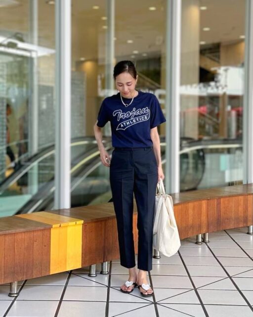 きれいめコーデ・カジュアルコーデの両方で使いたときは「黒のトートバッグ」が最適。大人っぽくて落ち着いたカラーはオールマイティーに合わせられ、普段使いはもちろん通勤コーデにもうってつけです。