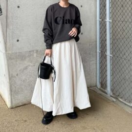スナップではちょっぴり辛口なアイテムセレクトも相まって、きれいめでありながらモードな雰囲気に仕上がっています。