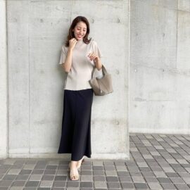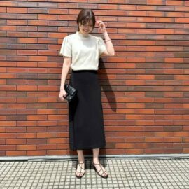 黒のスポーツサンダルにスカートを合わせる場合は、中途半端な丈ではなく「ロング丈」を選びましょう。足首まであるような丈感ならどんなデザインでもOKです。スナップのようなフレアスカートやマーメイドスカートをはじめ、タイトスカートやプリーツスカートなどあらゆるスカートと似合いますよ。