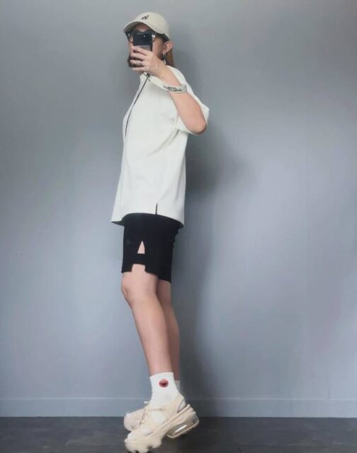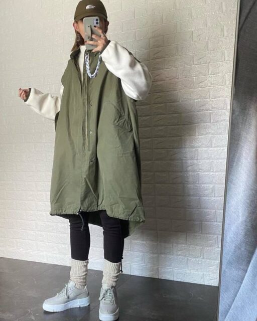 オーバーサイズのトップスを合わせれば着こなしやすいですよ。気になる脚のラインやお尻が隠れるので安心です。