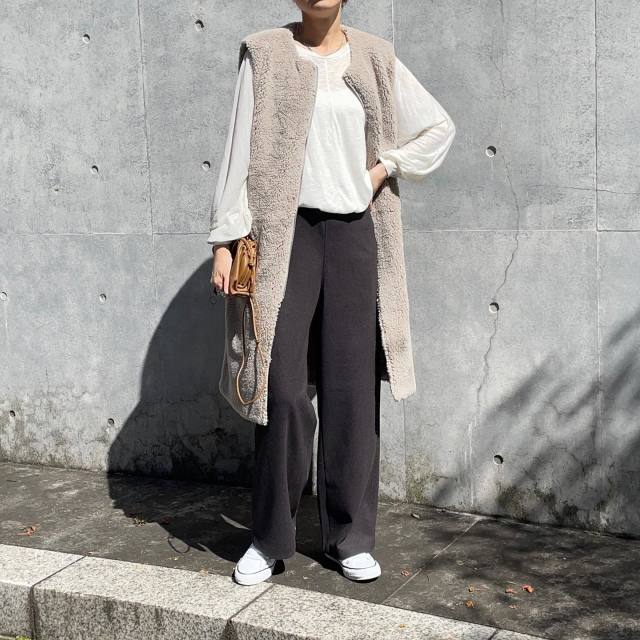スウェットパンツのラフ感が気になるときは「センターライン」が入ったスウェットパンツを選んでみて。流行りのワイドシルエットならスウェットパンツ独特のルームウェアっぽさを解消できます。