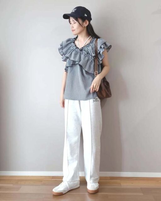 おしゃれさんから支持を集めているのが、主役級の「フリルブラウス」とパンツの着合わせ。ボリューミーなフリルのおかげで装飾性が高まり、インしなくてもコーデがこなれ見え。ゆったりとしたパンツに合わせるだけでスタイリングがサマになります。