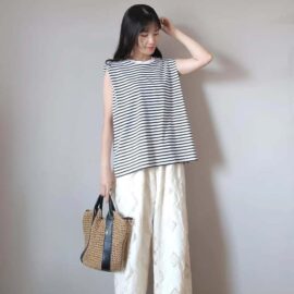 秋に向けて真っ先に欲しいのがノースリーブニット。近年は残暑が長いので思いのほかたっぷり活躍してくれます。羽織りの下に着やすく、レイヤードするのにも◎。またノースリーブは半袖よりアレンジしやすい一面もあります。