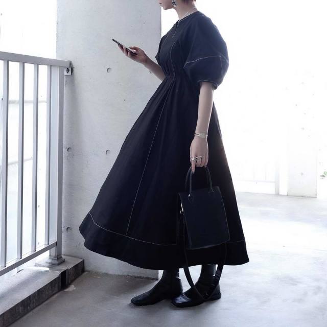 まず黒ワンピースを喪服っぽく見せないためにはアイテム選びが肝心。おすすめは「フェミニンな黒ワンピース」です。例えばスナップのようなボリューム袖やフレアシルエットなら、黒ワンピースにありがちなフォーマル感を払拭し喪服っぽさを回避できます。
