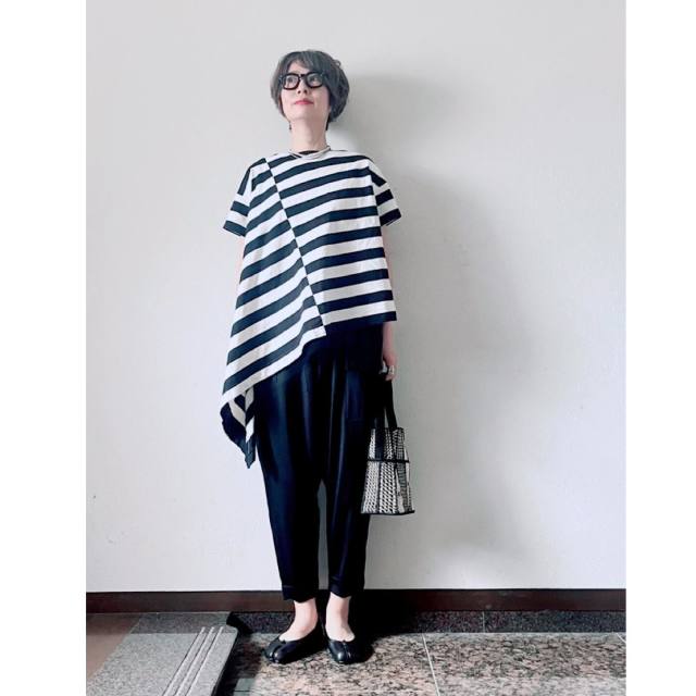 50代におすすめ|裾デザインのチュニックTシャツ×パンツのコーデ