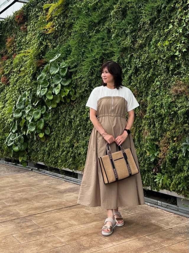 こちらは、GeeRA(ジーラ)のレイヤード風ワンピースを主役にしたスタイリング。ギャザーで作るふんわりシルエットと重ね着の今っぽさがとっても素敵!
