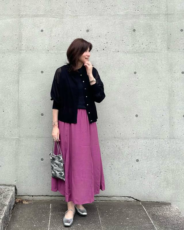 しまむらのカーディガンとスカートを合わせたこちらのスナップは、プチプラに見えない高見えコーデに。トレンドカラーなど、強めの色は購入するのになかなか勇気がいりますよね。でも、しまむらならプチプラで揃えることができて◎♪