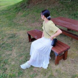 シフォンスカート・チュールスカートの軽やかな生地感はフェミニンで好印象。デニムシャツやスウェットを合わせれば、スニーカーも浮くことなく馴染みます。