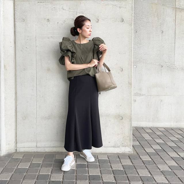 スカートコーデもかっこよくモードに決めたい! そんな日は黒スニーカーがスタイリングを助けてくれますよ。レディなスカートも、黒スニーカーでピリッと引き締めるとクールな印象にシフトします。