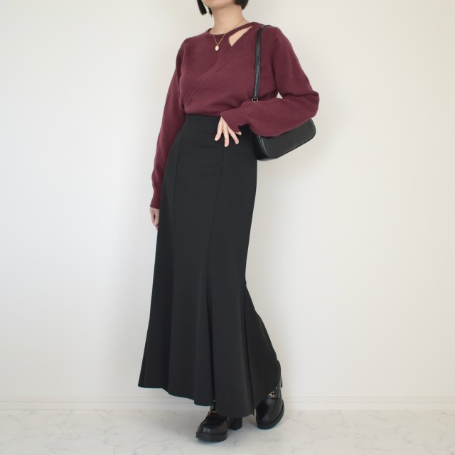 マーメイドスカートは腰からヒザにかけてのすっきりシルエットのおかげで重めアウターとも好相性。ロングスカートだとずっしり見えがちなスタイリングがおしゃれにまとまりますよ。これから冬にかけても大活躍すること間違いなし!