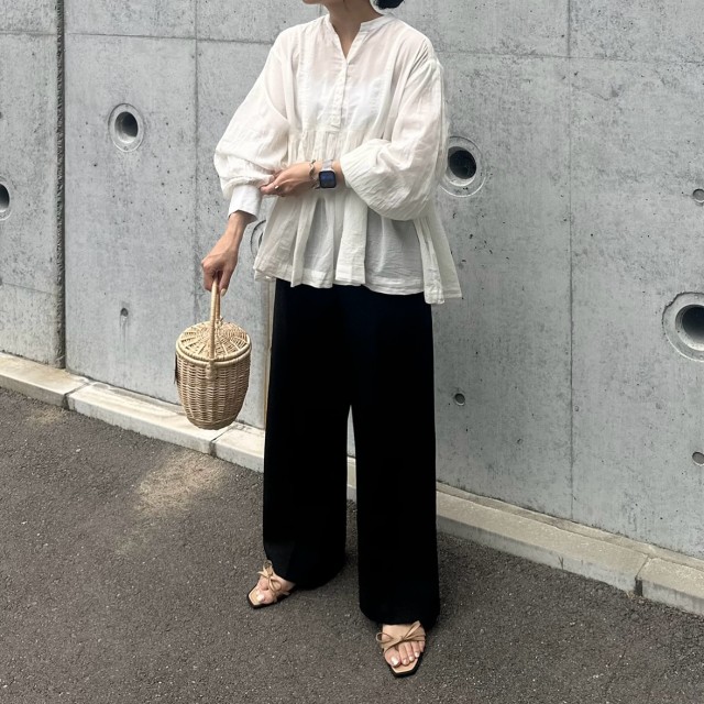 ペプラムトップスは時代遅れではなく、実はデザインが変わり再流行しています。最近の主流デザインは長め丈&ゆったりめシルエットのペプラムトップス。以前とは違い、ゆるっと着こなせるデザインにアップデートされています。