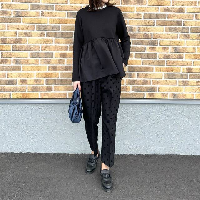 カットソー素材やニット生地が使われているので着心地は抜群。カジュアル感があるためペプラムデザインが大げさにならず、普段使いに馴染みます。