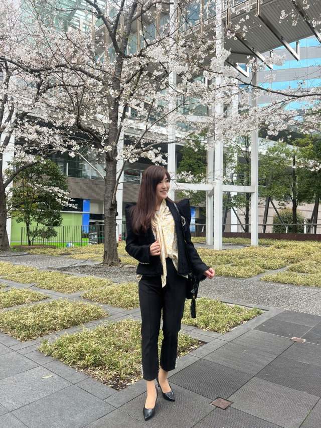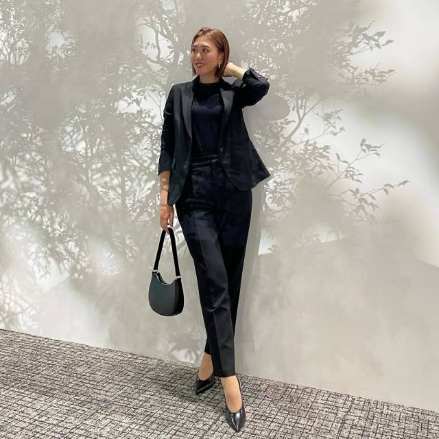 ブラウス×黒パンツ×ジャケットのコーデ