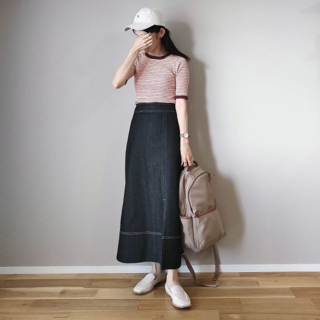 ベージュリュックのスカート&ワンピースコーデ