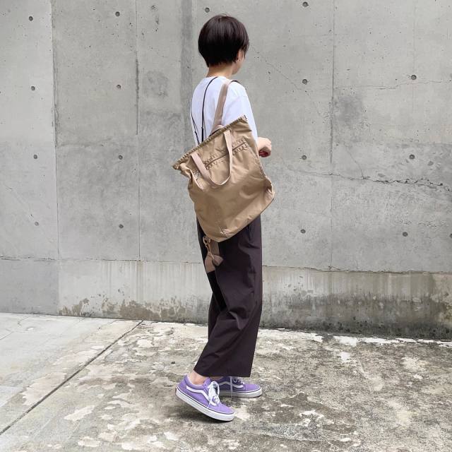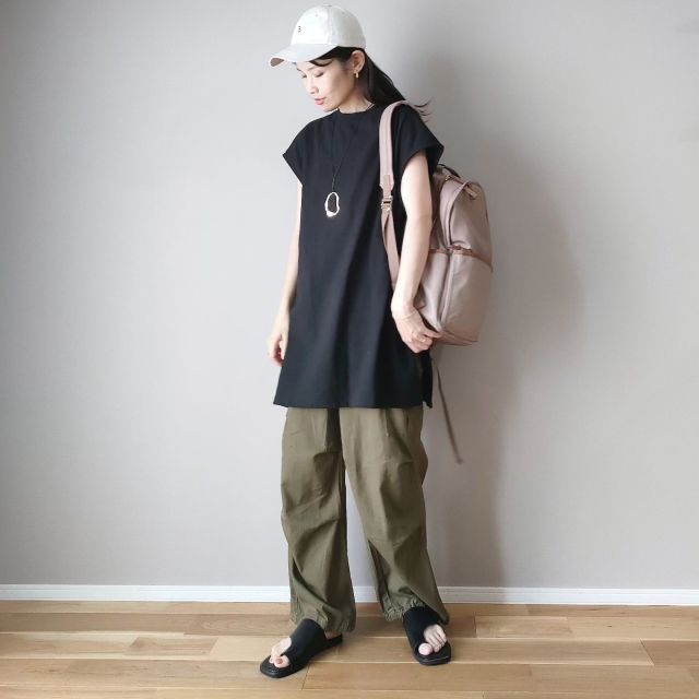 ベージュリュックのパンツコーデ