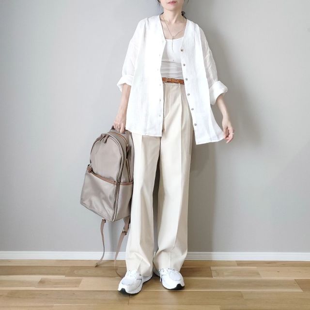 ベージュリュックのきれいめコーデ