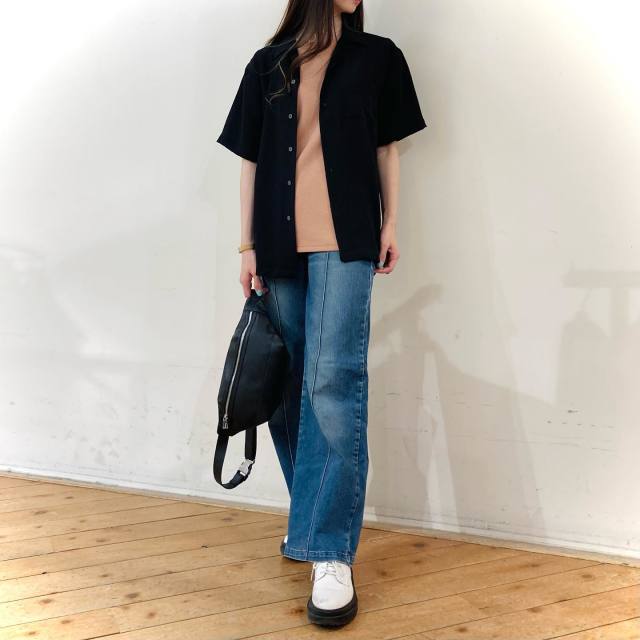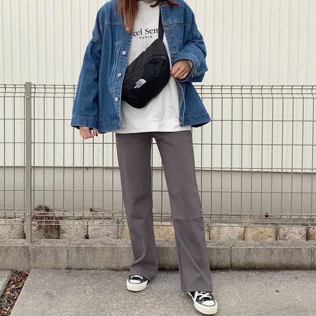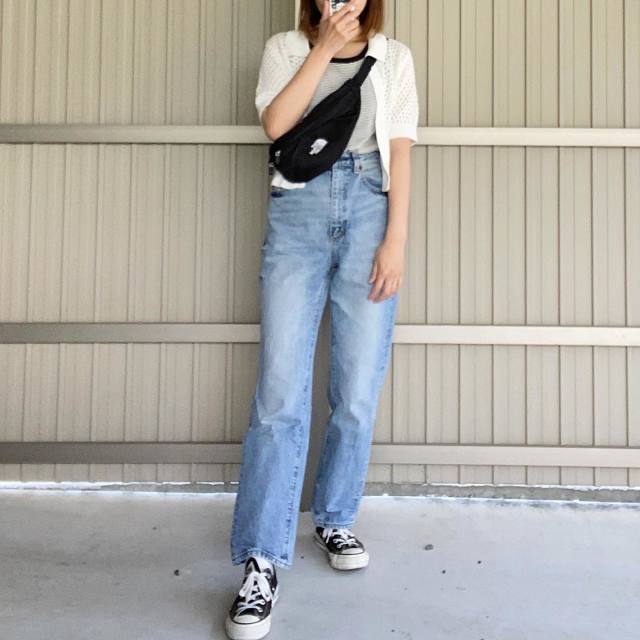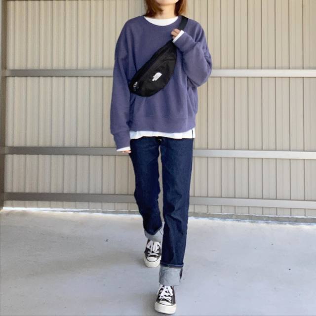 ボディバッグ・ウエストポーチとデニムパンツのコーデ