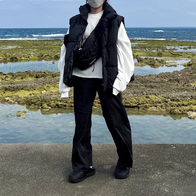 13. 【40代50代のもこもこベストコーデ15選】ファーベスト・ボアベスト・ダウンベスト着こなしのコツ
