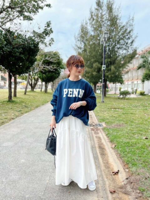 【2025年10月10日のコーデ】ロゴトップス×スカートで大人のこなれコーデに♪