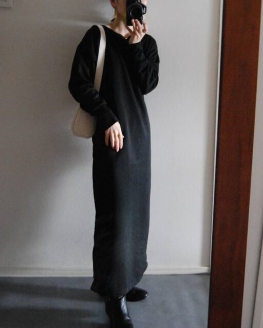 リブやカットソー生地の「Iラインワンピース」は着心地がラクで着回しやすい優れモノ。クセがないため合わせるアウターも選びません。シンプルな分アクセサリーやバッグが映えるので、自分らしいおしゃれが楽しめますよ。