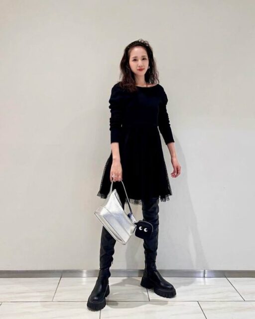 鮮度の高さなら「ひざ上ワンピース」。フレアシルエットで取り入れるとボディラインを拾いすぎず、大人可愛いルックスに決まります。ブーツやソックスに合わせるのが人気のスタイルです。