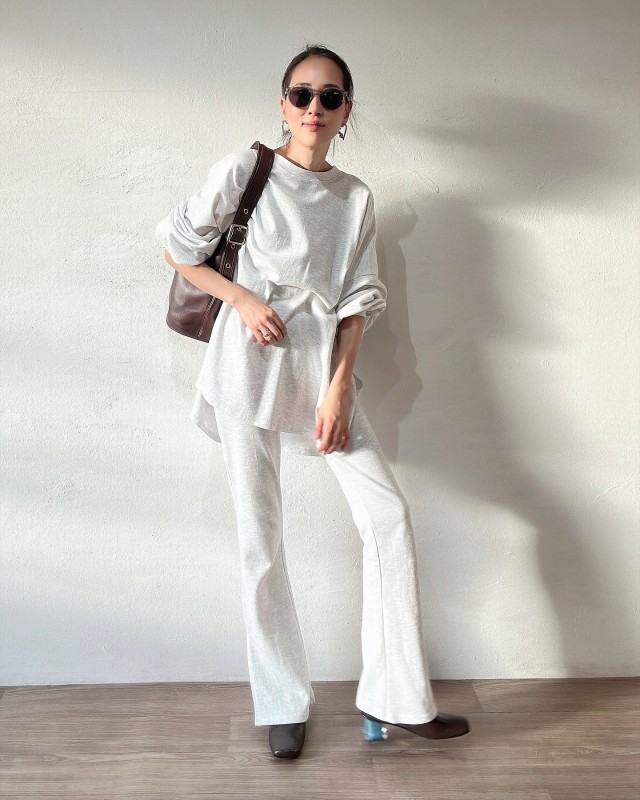 ロンT×スウェットパンツのシンプル大人カジュアルもおしゃれ! あえて無地の白黒モノトーンでまとめた潔さが大人っぽさを表現するポイントです。靴やバッグできれいめなデザインをプラスすれば、カジュアルすぎずおしゃれなバランスにアップデートします。