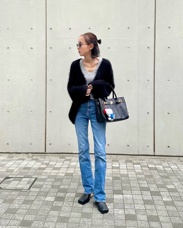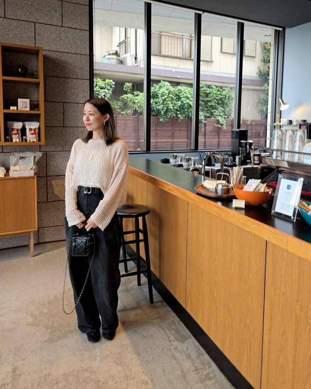 【40代×秋のデニムパンツコーデ】カーディガンで大人カジュアルに
