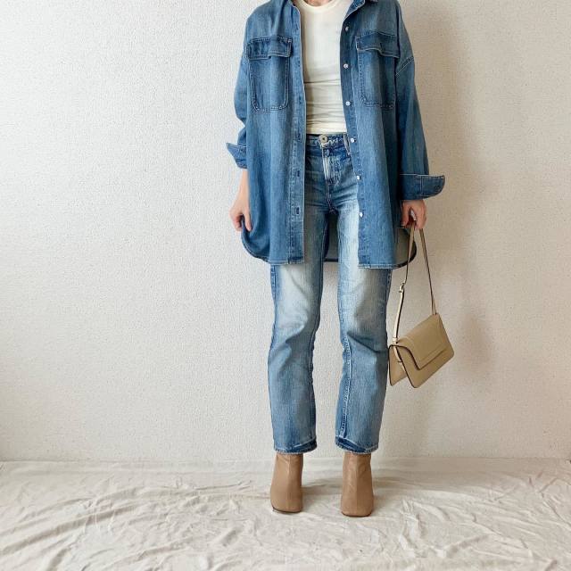 【40代×秋のデニムパンツコーデ】デニムオンデニムで今っぽく