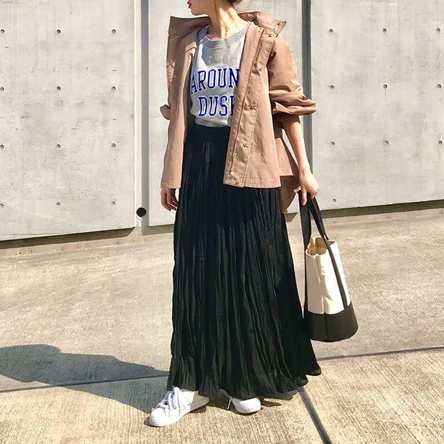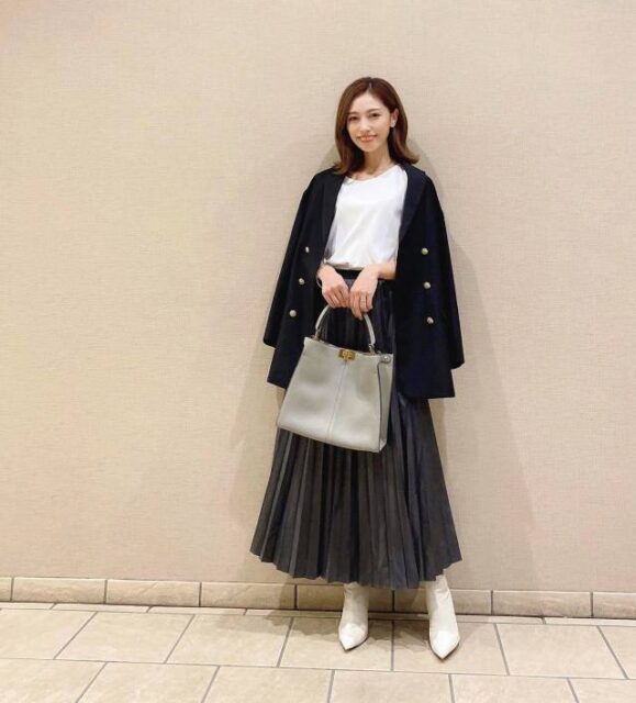 大人っぽくて体型カバーも兼ねられるプリーツスカート。合わせやすそうな定番服ですが、いざ出かけるとなったら「どのアウターが合うの?」と悩むことも。