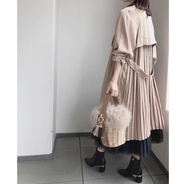 プリーツスカートに合うアウター4|トレンチコート