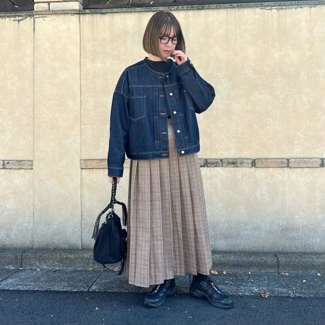 プリーツスカートに合うアウター2|デニムジャケット
